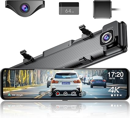 Dash Camera-Martalk-4K UHD Rearview Mirror Dash Cam with Zoom Backup Camera- 2160P Dual Mirror Dash Cam for Cars & Trucks