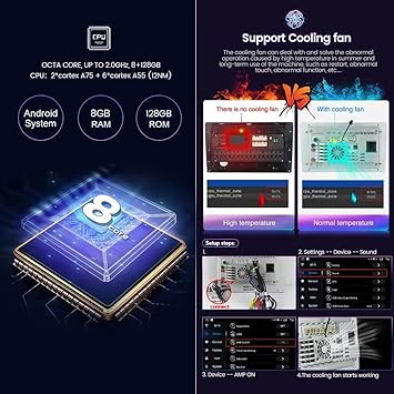 - The Android stereo with 8 core CPU and 8G RAM 128G ROM capacity ,which can fast respon act and respond to the actions taking on the screen quickly.1280*720 IPS 9 inch touch screen with clear resolution,built-in DSP sound system offer Great audio quality.