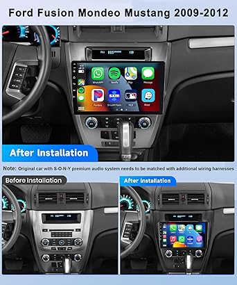 - Newest 8-Core 4G+64G Android 13.0 Car Stereo: Powerful 8core processor head unit for Ford Fusion Mondeo Mustang 2009 2010 2011 2012 comes with a plug and play wiring harness, easy to install. With a ultra-high resolution of 1280*720P IPS touchscreen, support split screen, customize home page, multiple UI and wallpaper choose