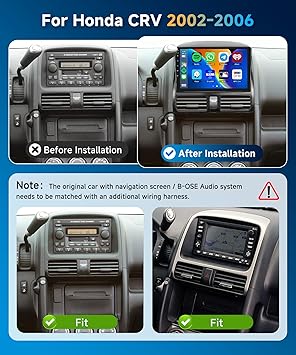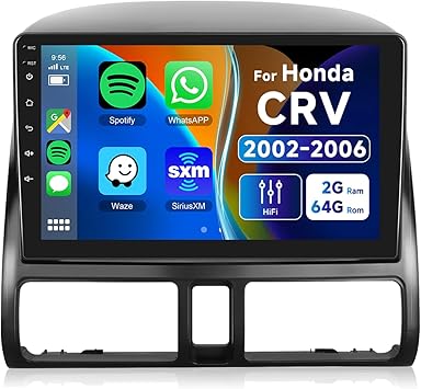 - For Honda CRV Radio 2002-2006: This Android car stereo comes with a wiring harness for plug and play installation. 9 inch HD 1080P touchscreen,2G RAM+64G ROM memory and a quad-core processor. This car radio can connect to a HD backup camera (included), dash cam, OBD and external mic. Also supports online/offline maps, Wi-Fi, RDS/FM radio, Hi-Fi Enhanced audio, split screen, video/subwoofer outputs, dual USB, steering wheel control