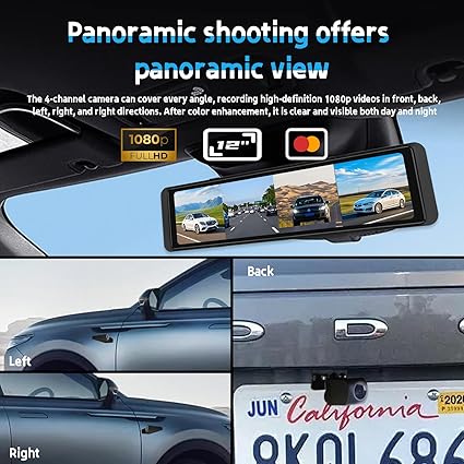Dash Camera-MKMZ-Rearview Mirror car Dash cam- 4-Channel