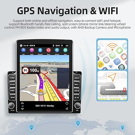 - 【Other Main Functions】Big screen car stereo support both online and offline navigation, easy to connect WiFi and hotspot, support Bluetooth hands-free calling, split screen/phone mirror link/steering wheel control/FM RDS Radio/video and audio output, with AHD Backup Camera and Microphone