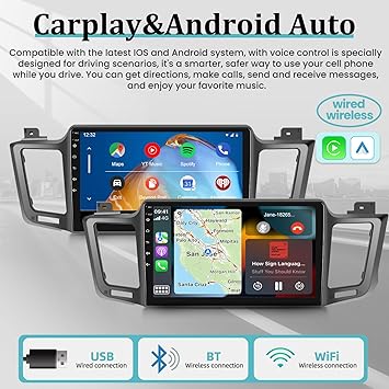 - 【Built-in Wireless Carplay & Android Auto】A smart way to use your smartphone in the car, simply connect your iPhone or Android phone to the Android car radio via bluetooth. Use smart voice assistant or touch the display, you can get directions, make calls, send and receive messages, and enjoy music etc.