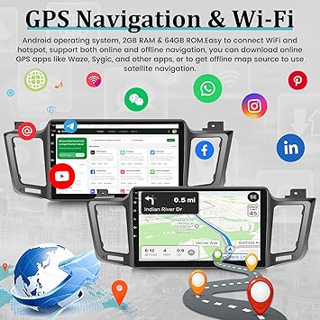 - 【Built-in GPS & WiFi】The car stereo for Toyota RAV4 built-in GPS module and an external GPS antenna for online or offline map navigation. With WiFi hotspot connection, you can use online navigation, support for downloading videos and apps, such as Facebook, Youtube, Tik Tok and any other app you like, which can enrich your car life!