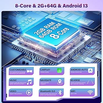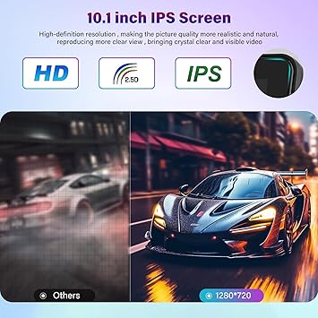 - “8 Core 2RAM + 64ROM to Run Quickly”: The Android 13 device, equipped with 2GB RAM and 64GB ROM, 10.1 inch IPS touch screen auto radio player has an ultra-high definition 1280x720P for easy operation and supports split screen, offering a fast, smooth, and clear visual experience that rivals that of an iOS device. The well-designed touch key interface enhances the driving experience by providing easy access to all functions.