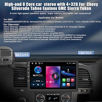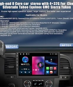 - 【8-Core Android 12 System for Chevy Silverado Tahoe Equinox GMC Sierra Yukon Car Radio】Using the latest Android 12 operating system, equipped with 4GB RAM and 32GB ROM. 8-core CPU with high performance and low power consumption ensure smooth operation of the car audio. Various apps can be downloaded when connected via Wi-Fi or hotspot.