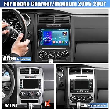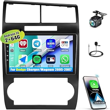- 【Applicable Car Models & Android 13 Car Stereo】This car radio for Dodge Charger/Magnum 2005-2007,please compare your car center console and adapter connector before purchasing. Double din car stereo with 2G RAM 64G ROM. Head unit supports Bluetooth, WiFi, GPS, FM, Mirror Link, Rear Camera Input and External Microphone etc., meet your needs.
