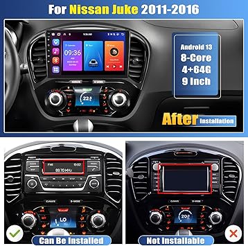- 【Applicable Car Models & Android 13 Car Stereo】This car radio for Nissan Juke 2011-2016,please compare your car center console and adapter connector before purchasing. Double din car stereo with 4G RAM 64G ROM. Head unit supports Bluetooth, WiFi, GPS, FM, Mirror Link, Rear Camera Input and External Microphone etc., meet your needs.