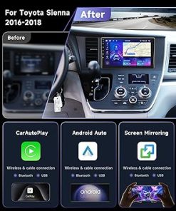 - 3.【Wired/Wireless CarPlay & Android Auto】This for Toyota Sienna 2017 radio support wired/wireless Apple CarPlay and Android Auto, you could more easily access the apps of your phone. You can also able to wake up the voice assistant Siri or Goo-gle Assistant to operate Apps on this head unit for Toyota Sienna 2018 , easily use GPS navigation, calls, message, music, and much more functions while keeping your hands free for safe driving