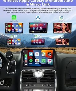 - 【Car Stereo with Carplay & Android Auto】For Dodge Grand Caravan Radio infotainment with touchscreen and built-in wireless/wired CarPlay and wireless/wired Android Auto for superior voice-assisted control and easier access to your phone features, including music, navigation, calls, notification, messages and much more. (Some Samsung Phones are Restricted.)