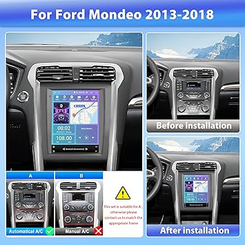 - 【Car Stereo with Carplay & Android Auto】For Ford Fusion Mondeo radio infotainment with touchscreen and built-in wireless/wired CarPlay and wireless/wired Android Auto for superior voice-assisted control and easier access to your phone features, including music, navigation, calls, notification, messages and much more. (Some Samsung Phones are Restricted.)