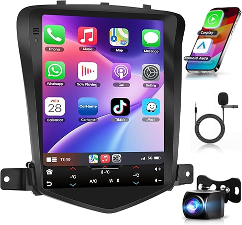 - 3.【Wired/Wireless CarPlay & Android Auto】 For Chevy Cruze 2010 radio support wired/wireless Apple Car Play and Android Auto.Choosing connect with your phone via Wireless Bluetooth or Wired USB,you could more easily access the Apps of your phone. You can also be able to wake up the voice assistant Siri or Goo-gle Assistant to operate Apps on Chevy Cruze 2011 1280P touchscreen,easily use GPS navigation,calls, message, music, and much more functions while keeping your hands free for safe driving
