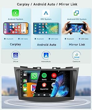 - Built-in Wireless Carplay & Android Auto: The car radio for Suzuki Swift supports wired and wireless Carplay and Android Auto, allowing easy access to your phone’s apps, such as real-time online map, music, call, and enabling voice control, enhancing your driving safety and comfort