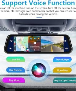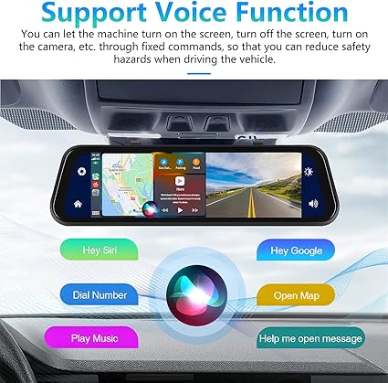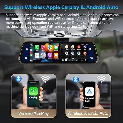 - 【Mirror Dash Cam with Wireless Carplay & Android Auto】Can connect wireless CarPlay and Andorid Auto, your phone is connected to the machine via Bluetooth and WiFi. After connecting to carplay or Android Auto, you can use voice control, GPS navigation, listen to music, make phone calls, and other rich entertainment software. Compatible with Google_Assistant and Siri voice control, super convenient.
