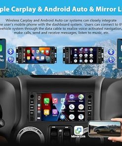 - 【Car Stereo with Carplay & Android Auto】For Jeep Wrangler Dodge Chevrolet Chrysler radio infotainment with touchscreen and built-in wireless/wired Apple CarPlay and wireless/wired Android Auto for superior voice-assisted control and easier access to your phone features, including music, navigation, calls, notification, messages and much more. (Some Samsung Phones are Restricted.)