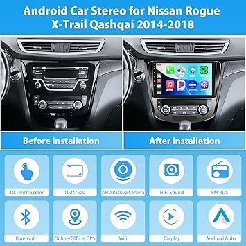 - Applicable Models: 10.1 inch touchscreen car stereo fits for Nissan Rogue X-Trail Qashqai 2014 2015 2016 2017 2018. No need additional frame, it includes a Plug and Play wiring harness for a effortless installation experience