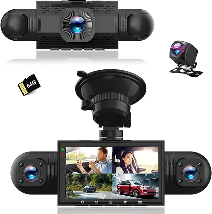 - Superior Night Vision with 8 IR Lamp:The left and right camera both has 4 IR lamps. Equipped with F1.8 aperture and Upgraded sensor, dash cam can ensure super clear image at night. Even it’s totally dark, it will show the image Protect your car at any time. 4 videos will display on the screen at the same time, providing the whole views around the car