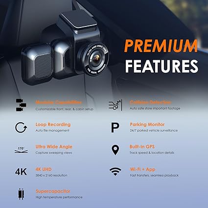 - Ultra HD 4K Clarity: Enjoy crystal-clear 3840×2160 resolution at 30fps. Perfect for capturing every detail on the road.