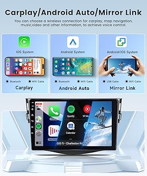 - Wireless Carplay & Wireless Android Auto & Mirror link: for 2008 Toyota RAV4 radio Sport car radio support use iPhone or Android phone wirelessly with the device, and control your phone’s apps. can make calls, send messages, play music, navigate with just your voice or touch. for Nissan Altima car radio support IOS/Android mirror link, use USB cable or WIFi, mirror your phone’s screen on the device’s display, You can use your phone’s apps, music, videos, etc on the device.