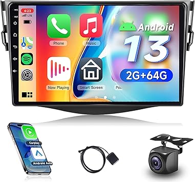 - Android 13 Systems: carplay stereo for Toyota RAV4 2007-2011. equipped with Android 13 system, 4Core CPU, Memory:2GB (RAM)+64GB (ROM) with powerful and stable processing and storage, with no lag or delay. 9 inch HD touch screen: Enjoy a large and clear display with 1280*720 resolutiona nd responsive touch control, which allows you to operate the device easily and comfortably.