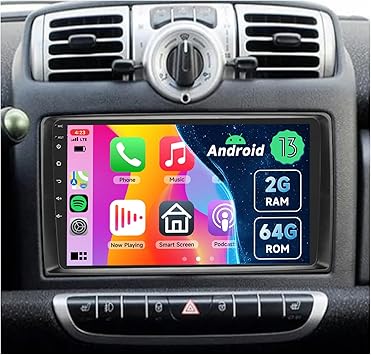 - 【Android Touchscreen Stereo】Compatible Vehicles: for Mercedes-Benz Smart Fortwo 2005 2006 2007 2008 2009 2010. Designed and Contoured to Match Factory Dashboard, Factory Style Texture Design, 9” 2.5D Tempered Glass Mirror auto radio player. 2G RAM + 64G ROM memory, High definition 1080P, full capacitance touch screen for easy operation, well designed user interface for car only. Support split screen.