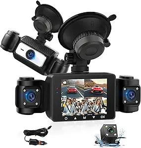 - FOUR CAMERAS: 360° FULL PROTECTION equipped with four cameras, the front three lenses can be adjusted shooting angle, allowing you to capture more details as you like. It can easily cover 360 angles to ensure that there is no dead angle around the car. You can use one lens to capture the interior of the vehicle.
