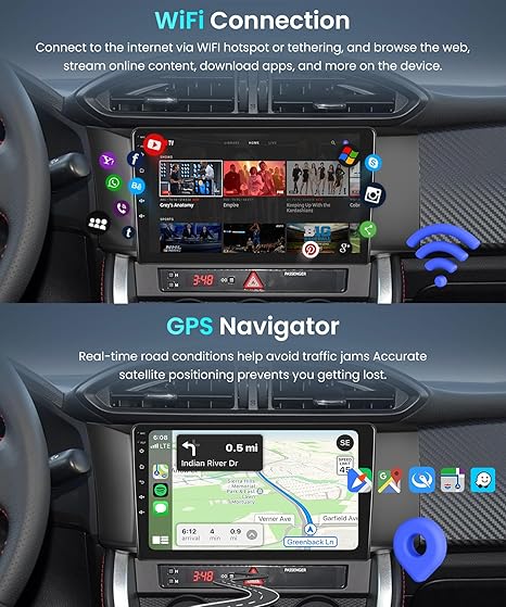 - GPS Navigation and WIFI: Experience the convenience of BRZ Bluetooth car stereo featuring a dual navigation system that supports both offline and online maps, ensuring safe driving even in areas with weak or no cell reception. With WiFi connectivity, you can access various phone functions directly on the Android car stereo, enhancing convenience and connectivity for your driving experience.