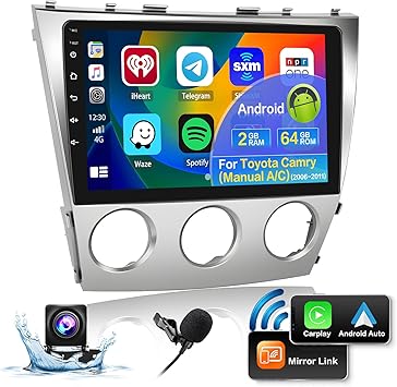 - Car Stereo with IOS Carplay & Android Auto: for toyota camry radio replacement with HD touchscreen and built-in wireless/wired Apple CarPlay and wireless/wired Android Auto for superior voice-assisted control and easier access to your phone features, including music, navigation, calls, notification, messages and much more (Some Samsung Phones are Restricted)