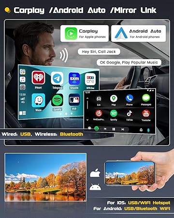 - Wireless/Wired CarPlay & Android Auto: For mercedes benz android car radio supports IOS CarPlay and Android Auto. Connect your phone and for mercedes sprinter touch screen car stereo with Bluetooth (Wireless) or original USB data cable (Wired), and gives you an incredibly intuitive way to navigation, make calls, send and receive messages, listen to music. You can also be able to wake up the Siri/Google assistant to operate apps on your phone while driving to keep safe