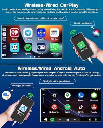 - Wireless/Wired CarPlay & Android Auto: For honda fit car play radio supports connect your phone and for honda fit car radio with Bluetooth (Wireless) or original USB data cable (Wired). And you can easily make/answer phone calls, listen to music, GPS navigation, integrating smart voice control via Siri and Google assistant to bring you more comfortable and convenient driving experience