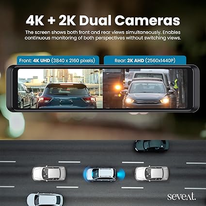 Dash Camera-Seveat-4K Mirror Dashcam with 2K Rear Camera- 170° Wide-Angle