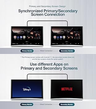 - Android Car TV: This headrest monitor Car TV, adopts Android 11.0 system, supports WiFi 5G/2.4 GHz, and can be connected to the personal hotspot of the mobile phone. You can download and install APPs APKPure, such as Prime video, and other video APPs.This car tv is great for car travel and your kids and family will love it.