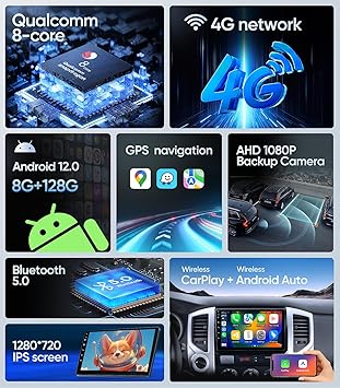 - 【High Performance Revolution】: Toyota Tacoma radio replacement built-in Qualcomm 8-core CPU processor , Android 13 system, 8G ram+128G rom, which will give you a silky operating experience. Large memory and flash memory can not only make the software run smoothly, but also allow the download of a large number of software, music, videos, etc.In addition, high resolution 1280*720 Toyota Tacoma touch screen radio has a sensitive touch response and color display without color difference.