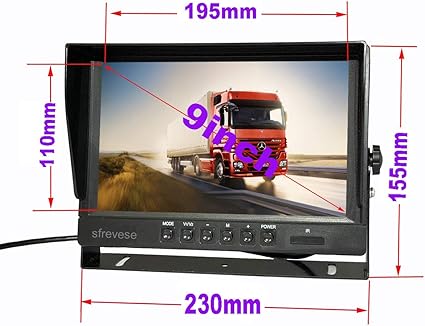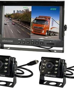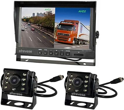 Dash Camera-sfrevese-9″ 4Pin IPS HD SD DVR Recording 2CH Split Car Rear View Monitor + 2X AHD 1080P Reversing Backup Camera for Bus Long Truck Vehicle Waterproof 12V-24V