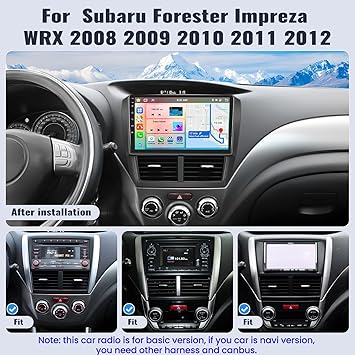- 【New Upgrade Function】Android 13/ 4G+64G / Bluetooth 5.0 / Network Radio / Weather Forecast / 32EQ / 19 Wallpaper / 59UI Desktop Themes / 3 Split Screen function / Intelligent Voice / Mirror Link. The Android 13 car stereo is for Subaru Forester Impreza WRX 2008-2012. Plug and play, easy to install. Note: this subaru car radio is for basic car. If your car is navi version with harman karton, you need buy other harness and canbus, please find us. We offer online help and user manual