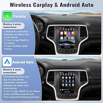 - 【Subaru Car Radio with CarPlay and Andriod Auto】 This Jeep Grand Cherokee car radio supports wireless and wired apple carplay and android auto mirror link. After connecting the phone to the 9.7 inch car stereo, you can access map, GPS navigation, phone contacts, email, notification, music and more while you stay focused on the road. You can also wake up Siri or Google assistant through voice control to get help from them. Note: does not support Samsung phones