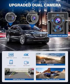 - 4K/1080p Dual Dash Cam Recording – Stay safe with the SPRLEAF integrated Dual Cam system: a 4K front dash cam for clear video recording and a waterproof HD 1080P rearview camera for precise parking assistance. The backup camera offers a wide-angle view displayed on the screen, ensuring clear rear visibility—crucial for safe maneuvers in tight spaces.