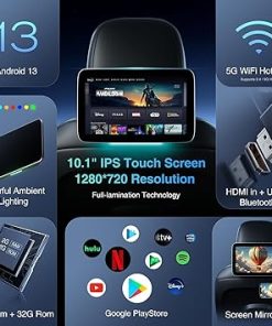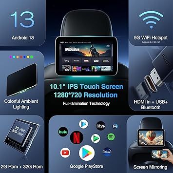 Dash Camera-Tiusone-10.1-inch Android 13 Multi-Functional Car TV Headrest Monitor for Back Seat- IPS Touch Screen Video Player