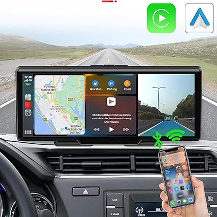 - 【Front 4k + Rear 1080p Cameras】Flexscreen pro carplay equipped with a 4k front camera and a 1080p rearview backup camera, this device ensures clear, high-resolution views for safer driving. Dual-screen recording captures both front and rear perspectives simultaneously, giving you a comprehensive record of your journeys with a wide 178° viewing angle