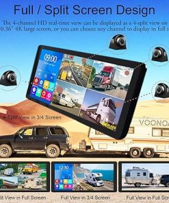 Dash Camera-VOONOA-4K RV Backup Camera System 10.36″ Quad Split Touch Screen Monitor with 4 1080P Rear Side View Camera- DVR Recording Bluetooth MP3 MP5 IP69 Waterproof Night Vision for RV Truck Trailer Tractor VN001B