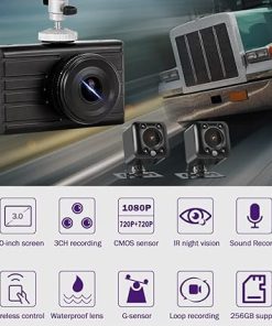 - 3CH Simultaneous Recording System & Split Screen: The DVR system allows for simultaneous recording from 3-point angles. The main cam is on the front, and the other 2 separate small cameras are for the left and rear side view. You can easily monitor the different camera images on the 3.0-inch HD monitor with the wireless remote.