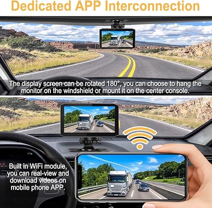 Dash Camera-VSYSTO-VSYSTO Backup Camera- WiFi 7 Inch Monitor GPS HD 1080P Front and Rear Camera Infrared Night Vision Lens Truck Dash Camera for Semi Trailer Van Tractor RV Car
