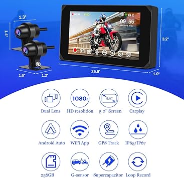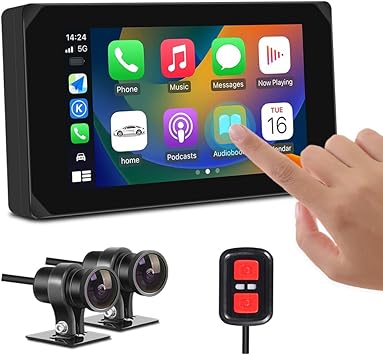 - 5.0” Touchscreen Display: The large, vibrant touch screen of the motorcycle carplay provides an intuitive interface for quick navigation, easy review of footage, and hassle-free control of your device.