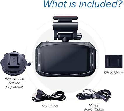 - Includes 2 Windshield mounts (suction cup + sticky mount), power adapter, mini usb cable. [SD card not included.] We recommend high endurance microSD card for best performance