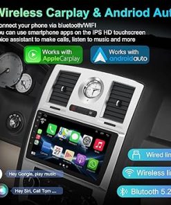 - 【Wireless Carplay & Android Auto】 Jeep Chrysler 300C radio is compatible with wired/wireless carplay and Android auto. You can seamlessly use your phone on the 9 inches big screen. It provides excellent voice-activated control, allowing you to easily access phone functions, including music, GPS navigation, calls, notifications, messages, etc.while keeping your hands free for safe driving!