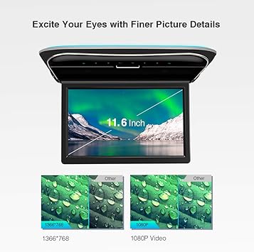 - 🚙 SUPERIOR VISUAL ENHANCEMENT – Comes with a TFT digital wide screen and 1366*768 resolution which is a huge forward for 11.6 inch car roof mounted player, deliver incredible stunning pictures and videos that you’d like to watch nonstop during the journey.