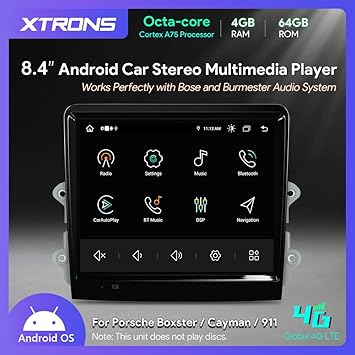 Dash Camera-XTRONS-XTRONS 8.4 Inch Android 14 Car Stereo for Porsche 911/Cayman/Boxster with Optical Fiber Decoder- IPS Touch Screen 4GB+64GB Global 4G LTE Car Radio GPS Navigation Support Wireless Car Play Android Auto