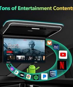 - 🚙 FIRST EVER ANDROID FLIP DOWN MONITOR – Equipped with the Android system, Quad Core CPU and 16GB ROM. This MP5 Player can connect WiFi or hotspot in car or cell phone, giving you the power to run your favorite apps including Netflix, YouTube, Prime Video, Hulu, etc. and also download other APPs, music or games in play store.
