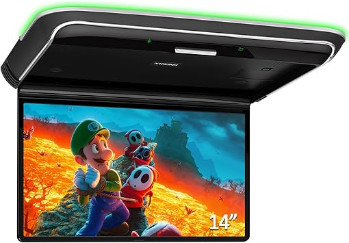 Dash Camera-XTRONS-XTRONS Android Car Overhead Player 14 Inch Wide IPS Screen 1920×1080 Car Roof Mount Monitor with Built-in Stereo Speakers Flip Down Overhead Car Monitor Support WiFi- HDMI Input