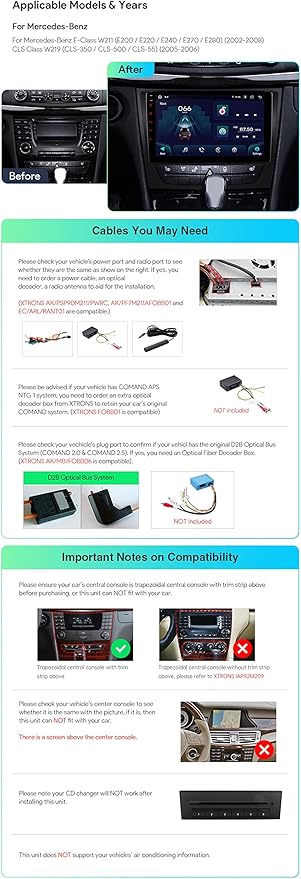 Dash Camera-XTRONS-XTRONS Car Stereo for Mercedes Benz E Class W211 W219- Android 13 Octa Core 4GB+64GB Car Radio